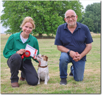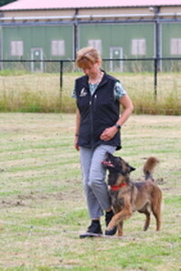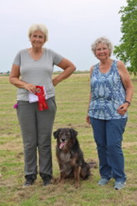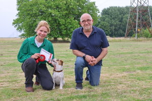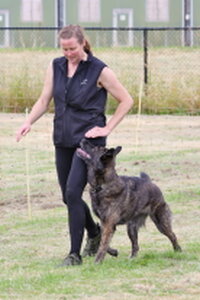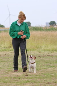 Dan bleef er nog één deelnemer over,. Dat was Bionda Adriaans met Mo (Jackrussellterriër). Het was voor Bionda met Mo haar eerste UK Obedience wedstrijd en dat was te merken aan wat echte beginners fouten, instappen op je hond, bochten niet altijd 90 of 180 graden, voeten verzetten bij komen op bevel. Foutjes die we allemaal gemaakt hebben in de eerste wedstrijden. Mo deed het heel goed, ging af en toe wel wat wijder van het been, dan in de startpositie, maar dat kan ook wat aan het veld hebben gelegen. Mo was erg aandachtig en hield de positie schouder/been keurig . Kortom verdiend gewonnen, gefeliciteerd en succes in de toekomst.