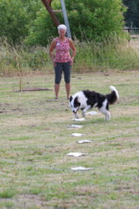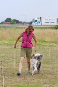 De eerste deelnemer was Lisanne Hol met Loki. Lisanne gaf vooraf al aan een trainingsrondje te willen lopen, wat ik natuurlijk heb toegestaan. Leuk rondje, goede hulp en op tijd gestopt, goed getraind.