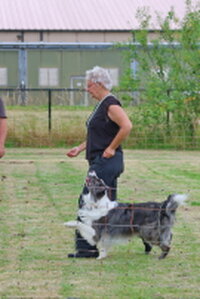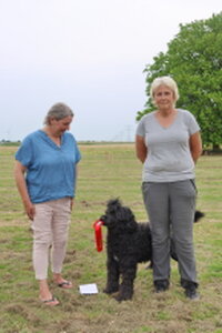 Door een blessure van Marianne (beterschap Marianne), moest ik invallen om de Pre-Beginners klas te keuren. Omdat de voorgaande twee dagen tropisch waren was er een hitte protocol ingevoerd. De wedstrijd begon een uur eerder en er waren zwembadjes neergezet om honden en deelnemers af te koelen. De keurmeesters hadden de rondjes wat ingekort, maar het bleek allemaal wel mee te vallen. Een vroeg zonnetje dook wat achter de wolken en er was zelf af en toe wat gedruppel wat voor afkoeling zorgde.