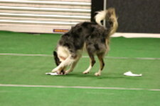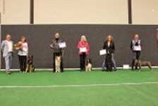 3rd Bernou ter Voorde & Firetouch She'zz Dishy Djiny (Working Sheepdog) Well done on your placing today Bernou. Related to the winner of today but this small collie worked very hard. Most marks lost on heelwork were handler body signals and an untidy fast pace. Sendway was unfortunate but your clear retrieve and ½ lost in scent helped you with you place today. Just be aware of the signals given as they are unnecessary marks to be lost Well done.