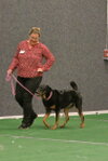 3rd Natalie Knaack-Enkelmann “Independent Spirit’s Kentucky” Malinois. All the way from Germany. I awarded Tucky the Sealight Wimp Memorial Shield, which is awarded to the dog the judge considers the most stylish. Tucky displayed full power and enthusiasm throughout the round. A real favourite of mine who has only got better as he has matured. Naterlie attacked the round, which Tucky responded to with verve and precision. He has been soundly trained and had no difficulty taking the round apart. I think he thought my retrieve article was too girly for a big strong malinois so spat it out on his return. This impacted greatly on his mark. You can be well pleased with his round Naterlie, your dedication has paid off. Well done.