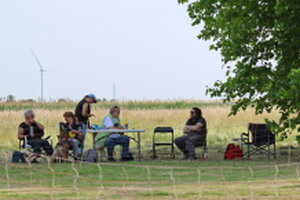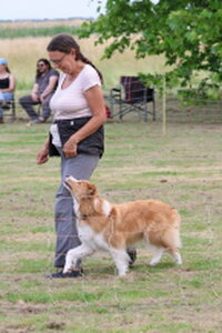 Door een blessure van Marianne (beterschap Marianne), moest ik invallen om de Pre-Beginners klas te keuren. Omdat de voorgaande twee dagen tropisch waren was er een hitte protocol ingevoerd. De wedstrijd begon een uur eerder en er waren zwembadjes neergezet om honden en deelnemers af te koelen. De keurmeesters hadden de rondjes wat ingekort, maar het bleek allemaal wel mee te vallen. Een vroeg zonnetje dook wat achter de wolken en er was zelf af en toe wat gedruppel wat voor afkoeling zorgde.
