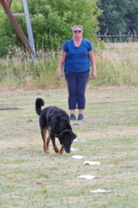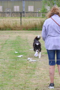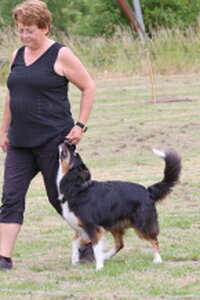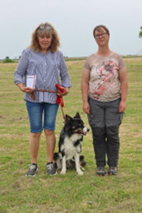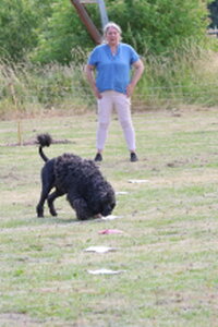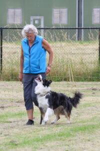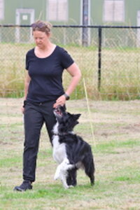 Dan bleef er nog één deelnemer over,. Dat was Bionda Adriaans met Mo (Jackrussellterriër). Het was voor Bionda met Mo haar eerste UK Obedience wedstrijd en dat was te merken aan wat echte beginners fouten, instappen op je hond, bochten niet altijd 90 of 180 graden, voeten verzetten bij komen op bevel. Foutjes die we allemaal gemaakt hebben in de eerste wedstrijden. Mo deed het heel goed, ging af en toe wel wat wijder van het been, dan in de startpositie, maar dat kan ook wat aan het veld hebben gelegen. Mo was erg aandachtig en hield de positie schouder/been keurig . Kortom verdiend gewonnen, gefeliciteerd en succes in de toekomst.