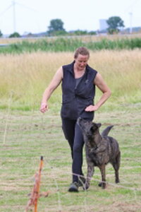 De eerste deelnemer was Lisanne Hol met Loki. Lisanne gaf vooraf al aan een trainingsrondje te willen lopen, wat ik natuurlijk heb toegestaan. Leuk rondje, goede hulp en op tijd gestopt, goed getraind.