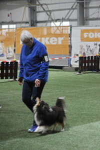5. Floor Goddijn & Gimmy (Sheltie) 8 3/4 punten Gimmy heeft het heel erg goed gedaan. Vooral de Retrieve was er netjes. Je ziet tijdens het hele rondje dat jullie samen een geweldige band hebben. Dat is zo leuk. Je help Gimmy de hele ring door . Ik denk niet dat jullie lang in de lagere klassen zullen lopen.