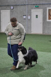 Wat een mooi rondje liepen jullie zeg. Gimmy was er helemaal voor je. Jij moet alleen nog aan je turns werken, je draait te snel en dat kan Gimmy niet bijhouden. Als je dat rustiger doet win je ook zo de volgende klasse. Bij de retrieve en de recall kunnen de finishes nog iets netter.