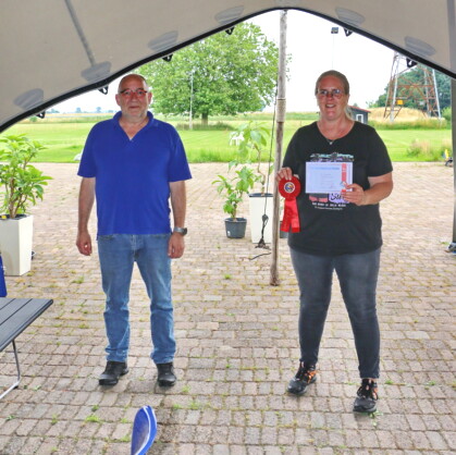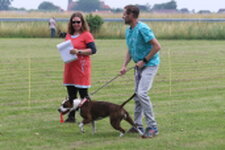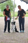 Wat zijn jullie samen gegroeid in de afgelopen maanden. Zo knap hoe hij onder je hand blijft lopen. Jammer van het anticiperen in de recall. En de erg scheve zit in de retrieve. Maar erg leuk om jullie te mogen keuren ! ( 6 1/2 pnt ) Ook in de trainingsronde heb ik erg mooie rondes gezien. Dat beloofd wat voor de toekomst. Ik wens iedereen een fijne vakantie en ik hoop dat we elkaar allemaal weer zien op 28 augustus in Schiedam