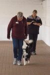 Karen and a very eager Kwinta worked the round well. Kwinta losing position a couple of times in both heelworks. A bump on present in recall and a rather enthusiastic retrieve added to the marks lost. I am sure that these will be fixed quickly. Lost 11.5. Congratulations.