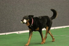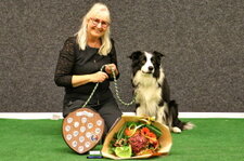 3rd Bernou ter Voorde & Firetouch She'zz Dishy Djiny (Working Sheepdog) Well done on your placing today Bernou. Related to the winner of today but this small collie worked very hard. Most marks lost on heelwork were handler body signals and an untidy fast pace. Sendway was unfortunate but your clear retrieve and ½ lost in scent helped you with you place today. Just be aware of the signals given as they are unnecessary marks to be lost Well done.