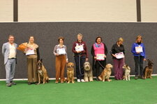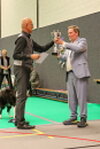 4th Monique van Urk “Molly’nRio’s Special JonT WS. This was a very nice flowing round that Monique handled well. A missed position did not help his mark. Another one who did not like the retrieve article. Very good DC helped cement this place. Monique and JonT were awarded the Charlie Wyant Trophy for winning the most C’s in the course of the year. A great achievement to produce such consistency. The trophy was donated by the great master of obedience Charlie Wyant who really helped promote the sport in the Netherlands.