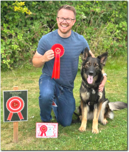 During my time at Dogs Trust, I also adopted another Border Collie, Mavis (Double Feature Picture Show), who is now retired. Currently, I have a two-year-old German Shepherd, Olive (Zakanja Baa Baa), bred by Jenny. Training Olive has been a rewarding new experience, and she has already won her first Novice obedience class and achieved second place as well. I feel privileged to have one of Jenny's exceptional dogs, and spending the weekend with her in Holland will be a testament to our friendship and shared love of the breed and obedience.