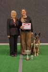 Natalie Knaack-Enkelmann & I AM THE ONE VON MALIHATTAN, Belgian Malinois. Congratulations, what a wonderful partnership. A dog that tries his heart out. It was an honour and a privilege to award you first place and also present you with the most stylish - Sealight Wimp Memorial Shield donated by Brian McGovern.