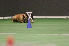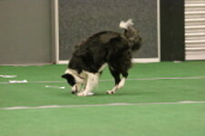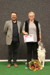 3rd Bernou ter Voorde & Firetouch She'zz Dishy Djiny (Working Sheepdog) Well done on your placing today Bernou. Related to the winner of today but this small collie worked very hard. Most marks lost on heelwork were handler body signals and an untidy fast pace. Sendway was unfortunate but your clear retrieve and ½ lost in scent helped you with you place today. Just be aware of the signals given as they are unnecessary marks to be lost Well done.