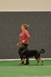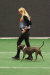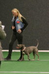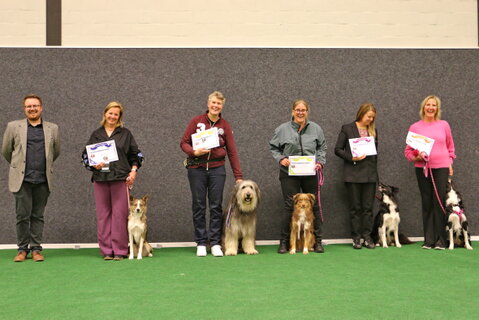 5th Angela Korver “Jessie” Staffordshire bull terrier. I awarded this dog best young dog alongside his place. He is a lovely dog who has a good relationship with his owner. He needs to build up his understanding of heelwork but had very nice retrieve and recall. Well done.