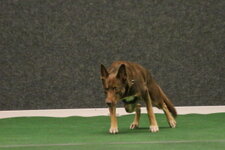 3rd Natalie Knaack-Enkelmann “Independent Spirit’s Kentucky” Malinois. All the way from Germany. I awarded Tucky the Sealight Wimp Memorial Shield, which is awarded to the dog the judge considers the most stylish. Tucky displayed full power and enthusiasm throughout the round. A real favourite of mine who has only got better as he has matured. Naterlie attacked the round, which Tucky responded to with verve and precision. He has been soundly trained and had no difficulty taking the round apart. I think he thought my retrieve article was too girly for a big strong malinois so spat it out on his return. This impacted greatly on his mark. You can be well pleased with his round Naterlie, your dedication has paid off. Well done.