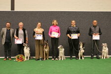 6th Jacqueline van Vlimmeren “ Ronya-Kiki van Rooverehof” Tervuerence herder. This is a lovely keen dog. I awarded him the most promising young dog in this class alongside his place. He needs more time to transfer his training into the competitive ring but he has great potential. To get placed in this class is a great achievement so seek out the help to extend your training such that you will be at the other end of the line-up soon. He is certainly capable. Well done.