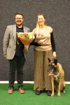 2nd Natalie Knaack-Enkelmann & I am the One von Malihattan (Malinois) and Most Promising Award given I really liked this team. Unfortunate to come across the above team, however, very capable of winning this class together. Natalie and Oni displayed a powerful heelwork round. Oni was a dream to watch with his beautiful movement and his controlled energy flowed in their display. The best fast pace of the day. Excellent set exercises, such a shame the drop was re-commanded but other than that very minimal marks lost, and a lovely clear scent helped them achieve second place today. In Natalie’s wonderfully-talented hands Oni will follow in his fathers footsteps and make their mark in obedience. Well done on your placing today and he certainly is a promising dog. You should be so proud.